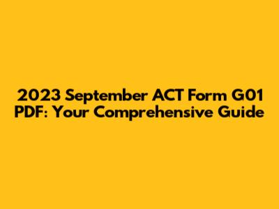 Hey guys! Are you looking for information on the 2023 September ACT Form G01 PDF? You've landed in the right place! This guide will walk you through everything you need to know about this particular ACT form, ensuring you're well-prepared and informed. Whether you're a student, a parent, or an educator, understanding the nuances of the ACT form is crucial for a smooth testing experience. So, let's dive in and unravel all the details surrounding the September 2023 ACT Form G01. Remember, preparation is key, and knowing what to expect can significantly reduce test-day anxiety. We'll cover what the ACT Form G01 typically entails, including the subjects tested, the types of questions you might encounter, and how to best prepare for each section. Stick around, and let's get you ready to ace that ACT!