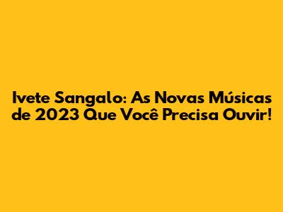 Ivete Sangalo: As Novas Músicas De 2023 Que Você Precisa Ouvir!