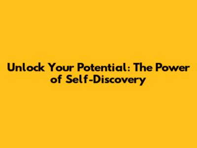 Unlock Your Potential: The Power Of Self-Discovery