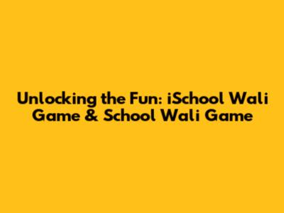 Unlocking The Fun: ISchool Wali Game & School Wali Game