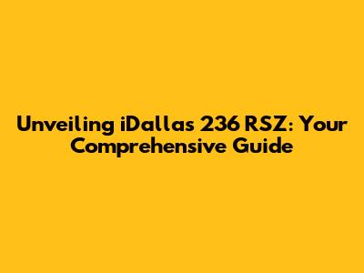 Unveiling IDallas 236 RSZ: Your Comprehensive Guide