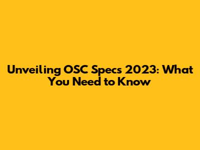 Unveiling OSC Specs 2023: What You Need To Know