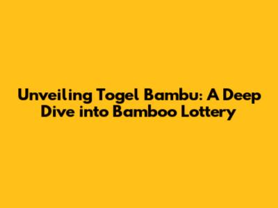Unveiling Togel Bambu: A Deep Dive Into Bamboo Lottery