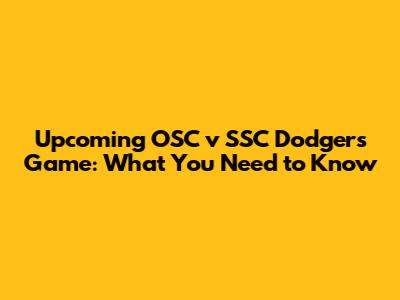 Upcoming OSC V SSC Dodgers Game: What You Need To Know