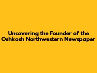 Hey everyone! Today, we're diving deep into the history of a local gem, the Oshkosh Northwestern newspaper. You might be wondering, who founded the Oshkosh Northwestern newspaper? It's a question that many of us who appreciate local journalism ponder. This iconic newspaper has been a cornerstone of the Oshkosh community for ages, chronicling its triumphs, its challenges, and its everyday life. But the story of its inception is often overlooked. Let's pull back the curtain and shed some light on the individual or individuals who first brought this vital news source to life. Understanding the origins of a publication like the Oshkosh Northwestern isn't just about knowing a name; it's about grasping the vision and the entrepreneurial spirit that fueled its creation. It’s about recognizing the foundational steps that led to decades of news reporting, community engagement, and the shaping of public discourse in Oshkosh, Wisconsin.